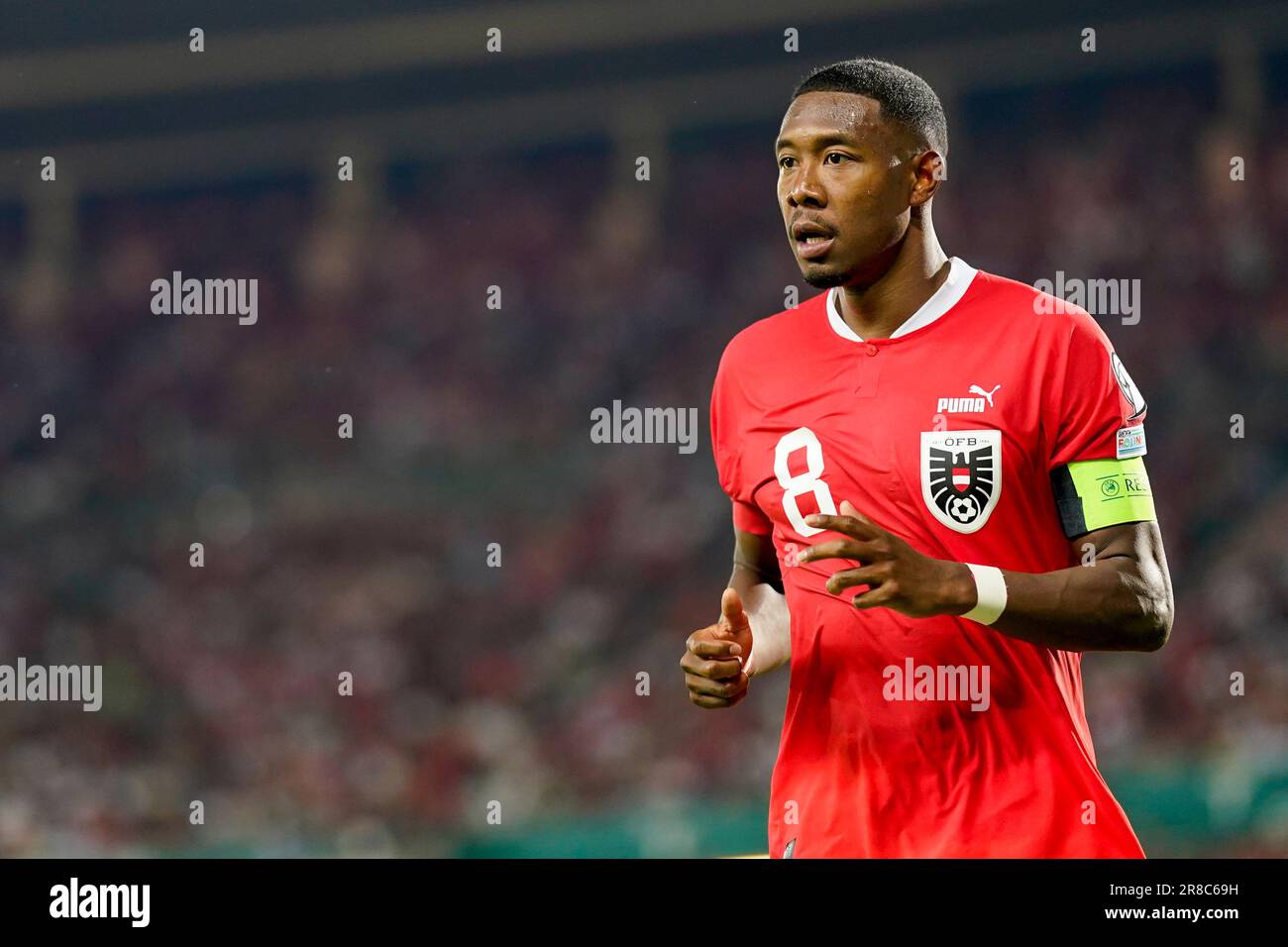 Austria’s David Alaba runs during the Euro 2024 group F qualifying
