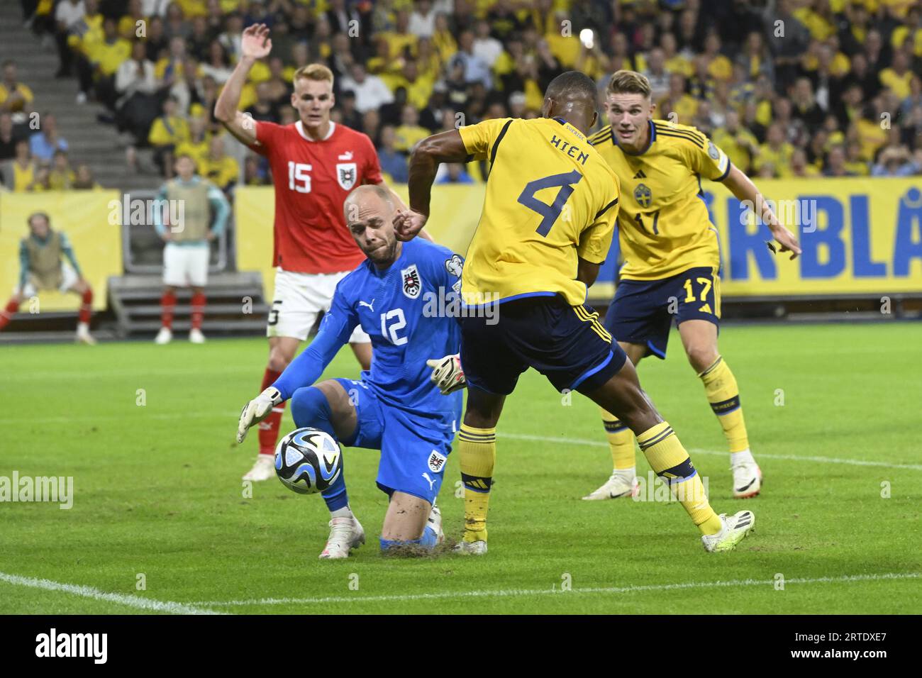Austria’s goalkeeper Alexander Schlager (#12) and Sweden’s